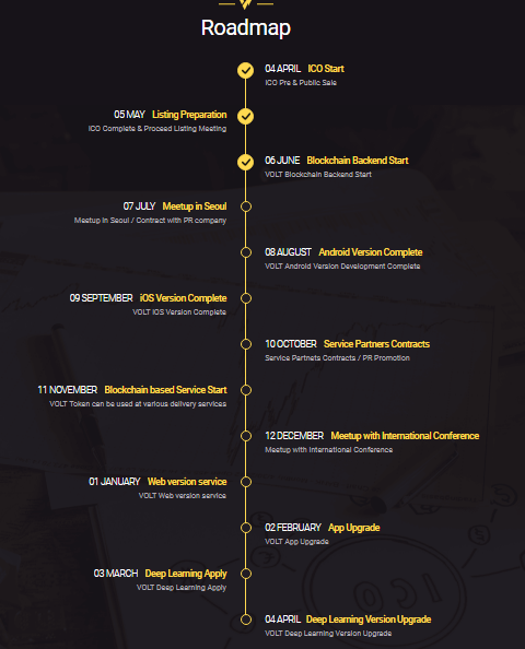 VOLTの行動計画は、顧客と宅配便を結びつけ、ビッグ・データを使用した簡単な計算と、簡単な管理運営のための鋭い契約を活用する調整フレームワークを提供します。クライアントは、この管理を利用するためにVOLTコインが必要です。
